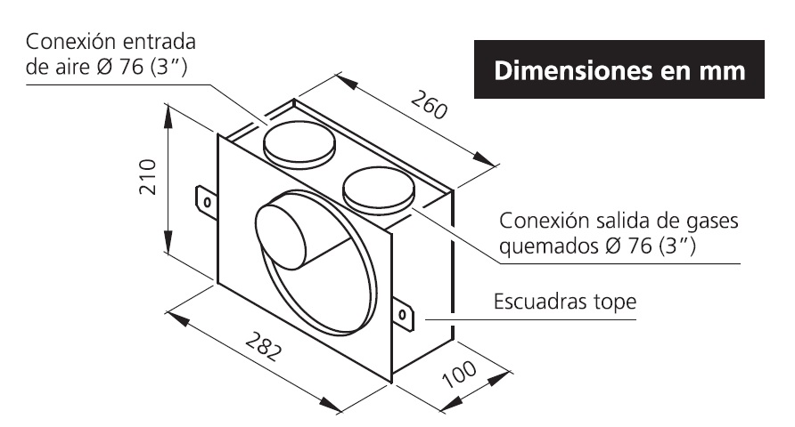 Diámetro de anclaje de ducto a instalar: 76mm (3").